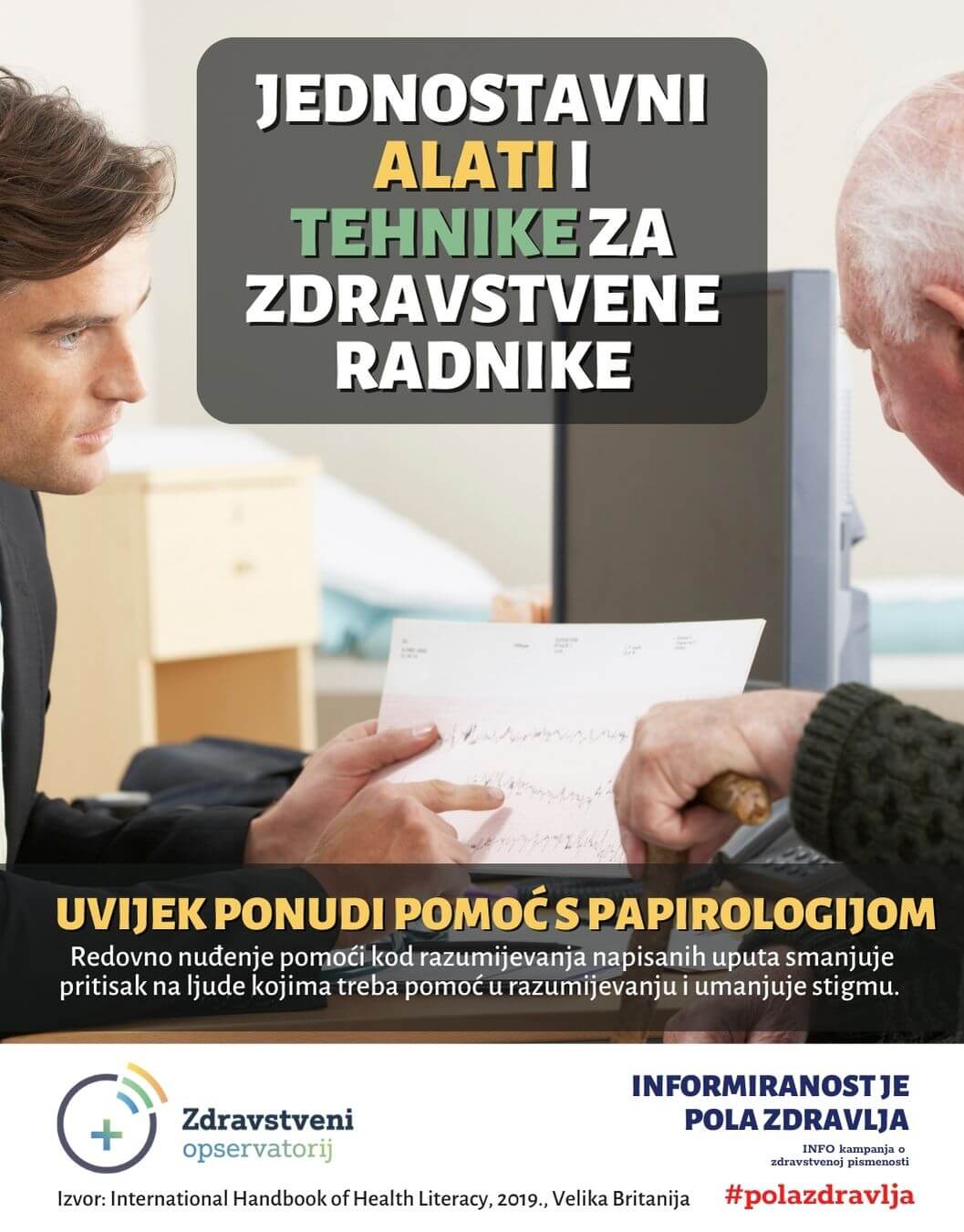 Pretkampanju za podizanje svijesti javnosti o zdravstvenoj pismenosti nazvali smo “Informiranost je pola zdravlja” (#PolaZdravlja), kako bi naglasili važnost zdravstvene pismenosti za ukupno zdravlje građana te adresirali ključni izazov u istraživanju – pronalazak, razumijevanje i upotrebu informacija o zdravlju. U objavama smo ukazali na potrebu poboljšanja zdravstvene pismenosti pojedinaca i sustava, uključujući poboljšanje pristupa zdravstvenog osoblja prema pacijentima.